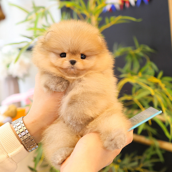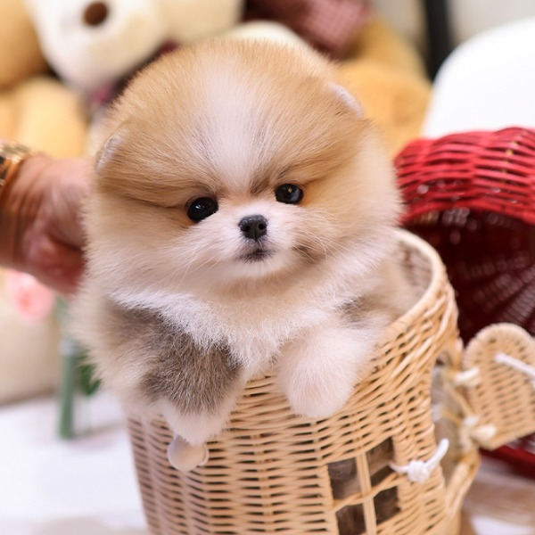 Ausgewachsen wiegt unser Toy Pomeranian zwischen 1,36 und 3,175 kg (3 und 7 Pfund) und ist zwischen 20,32 und 27,94 cm (8 und 11 Zoll) groß.