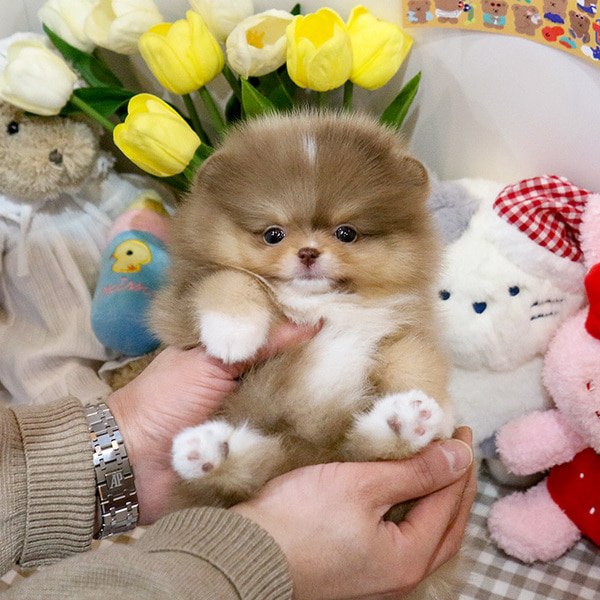 Ausgewachsen wiegt unser Toy Pomeranian zwischen 1,36 und 3,175 kg (3 und 7 Pfund) und ist zwischen 20,32 und 27,94 cm (8 und 11 Zoll) groß.